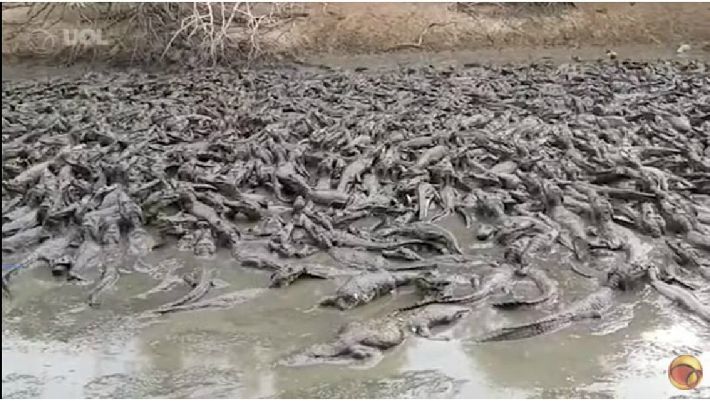 18일(현지시간) 브라질 뉴스포털 UOL에 따르면 마투 그로수 두 술주(州) 네콜란지아 지역에서 수백 마리 악어가 물웅덩이 한곳에 몰려 있는 모습이 지난 15일 농부들에 의해 촬영됐다.
