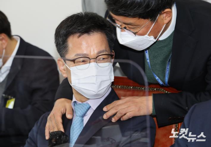 관계자와 대화하는 이정도 청와대 총무비서관