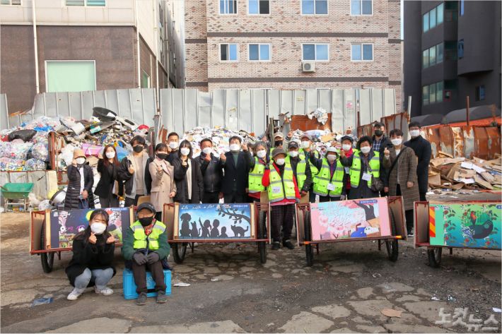리어카 한쪽 면은 공공근로로 참여하는 학생과 시민들이 제작한 미술 작품을 선보인다. 특히 광고판도 부착해 도심에 거주하는 저소득층 폐지 수거 노인들에게 추가 소득을 제공할 계획이다.