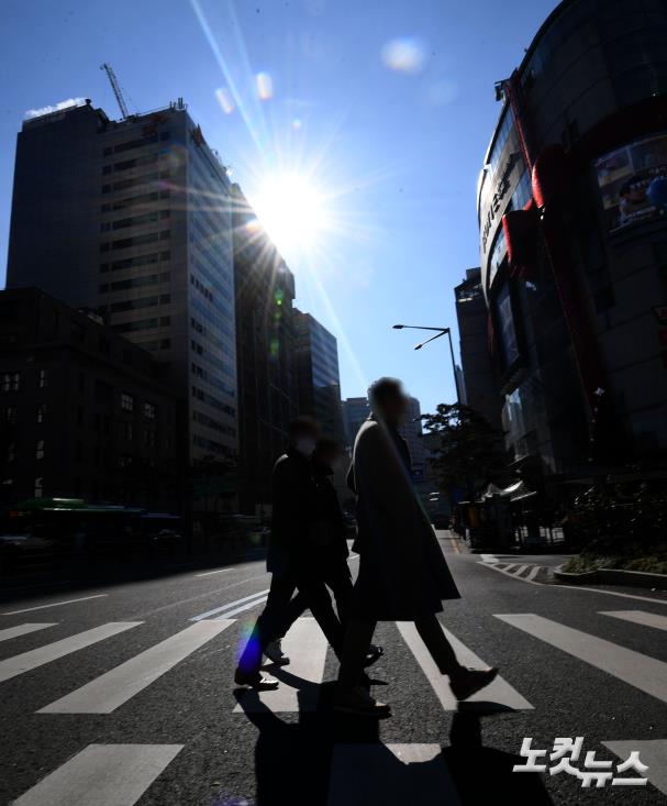 수도권 사회적 거리두기가 오는 24일부터 2단계로 격상되는 가운데 서울시는 23일 브리핑에서 연말까지 '천만시민 긴급 멈춤 기간'을 운영하기로 했다고 밝혔다. 서울시는 지난 8월 30일부터 9월 6일까지 '천만시민 멈춤 주간'을 운영한 바 있다. ‘천만시민 긴급 멈춤 기간’이 발표된 23일 오후 서울 을지로입구역 인근에서 직장인들이 점심식사를 위해 이동하고 있다.