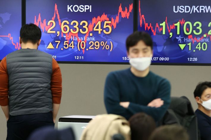 30일 한국은행과 한국거래소 통계를 종합하면 지난 27일 현재 명목 국내총생산(GDP)에 견준 국내 전체 상장사 시가총액(유가증권시장·코스닥시장 합산)의 비율은 112.7%로, 역대 최대치를 기록했다.