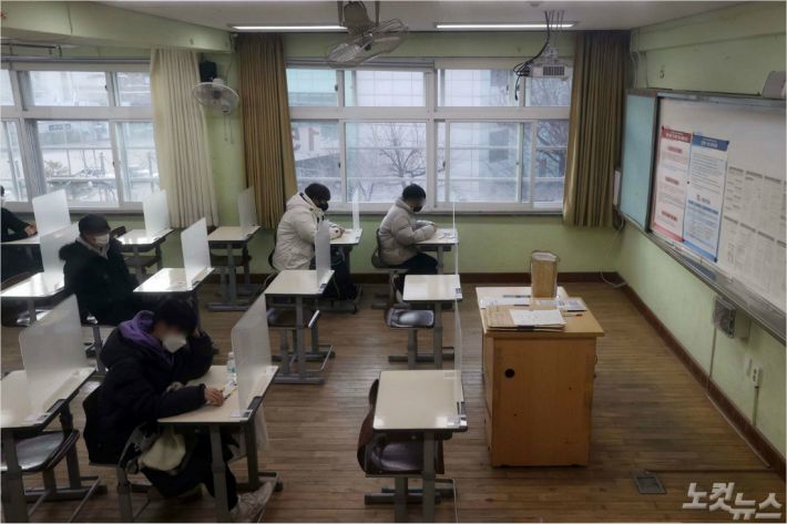 2021학년도 대학수학능력시험(수능)일인 3일 오전 서울 서초구 서초고등학교에 마련된 수능 고사장에 빈자리에 많이 보이고 있다. (사진=사진공동취재단)