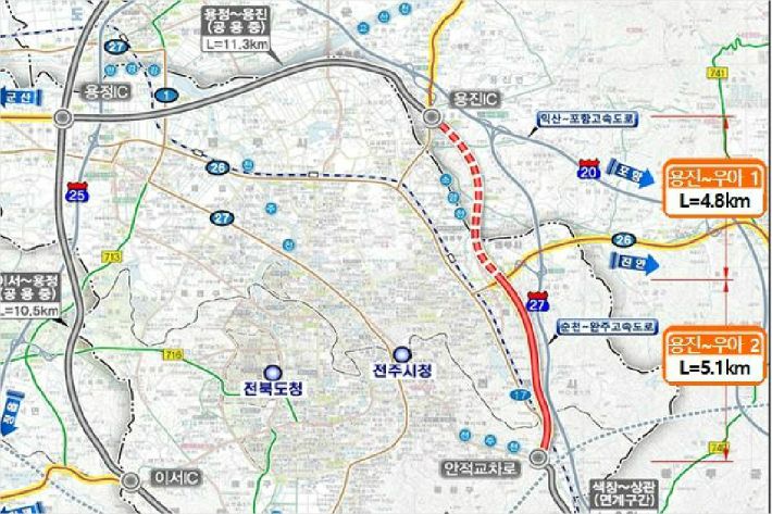 2차선 건설 예정 완주 용진-전주 우아 구간 4차선 확정