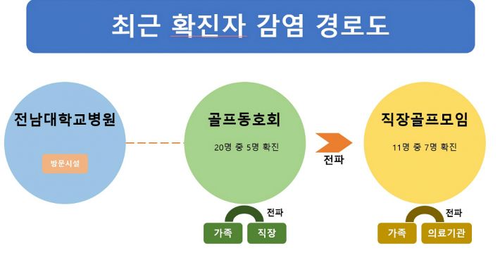 15명의 확진자를 유발하며 광주지역 코로나19 3차 대유행을 이끌었던 한 축인 골프 관련 확진자의 감염경로가 확인됐다.