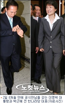 2일 이명박 대통령과 박근혜 전 대표가 8개월여 만에 공식 만남을 갖게 되면서 정가의 관심은 온통 박근혜 전 대표의 입을 주목하고 있다. 집권 2년차를 막 시작한 이명박 정부의 국정운영에 그 어느 때보다 박 전 대표가 중요한 변수로 부상하고 있는 것.