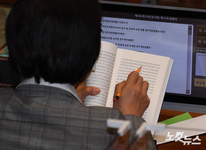 추미애 법무부장관이 9일 국회에서 열린 본회의에서 고위공직자범죄수사처 설치 및 운영에 관한 법률에 대한 국민의힘 김기현 의원의 무제한 토론이 이어지는 동안 '내가 검찰을 떠난 이유'라는 책을 읽고 있다.