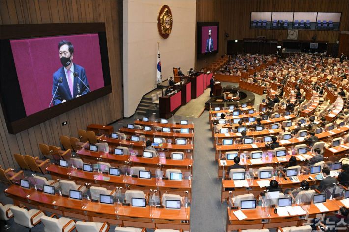 국민의힘 김기현 의원이 9일 국회에서 열린 본회의에서 고위공직자범죄수사처 설치 및 운영에 관한 법률에 대해 무제한 토론을 하고 있다. (사진=윤창원 기자)