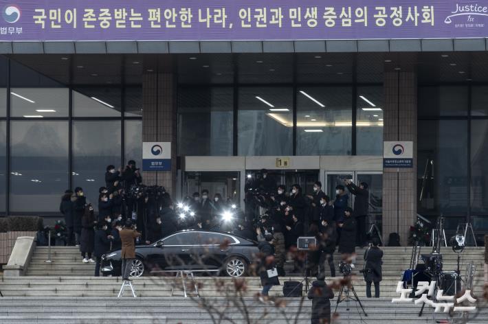 추매애 법무부 장관이 윤석열 검찰총장에 대한 징계위원회가 열리는 10일 오전 경기도 과천 법무부 청사로 출근하고 있다.