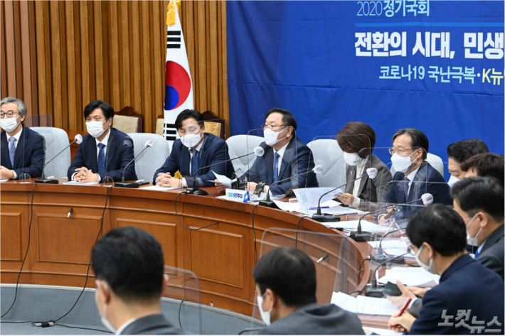 10일 오전 국회에서 열린 더불어민주당 정책조정회의에서 김태년 원내대표가 모두 발언을 하고있다. (사진=윤창원 기자)