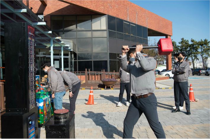 가장 먼저 실시한 '스트레스 아웃' 행사는 한화토탈 충남 대산공장에 해머게임기, 두더지게임기 등 추억의 오락기를 설치하고 임직원들이 자유롭게 즐길 수 있도록 했다.