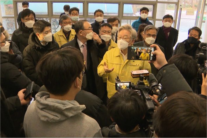이날 이재명 지사는 생활치료센터로 전환될 경기대학교 기숙사인 경기드림타워를 현장방문을 한 것인데요.
