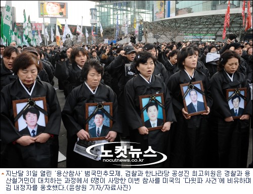 ''용산 참사''와 같은 사건이 흔하게 발생하는 것이 아니기는 하지만 검찰과 여당 최고위원이 같은 날 같은 사례를 든 점이 우연치고는 절묘하다.