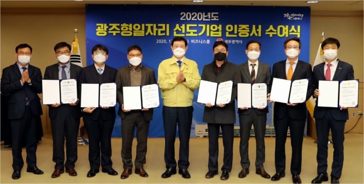 광주시는 삼성스텐레스상공㈜, ㈜대유홀딩스, ㈜디에이치글로벌, 기광산업㈜, ㈜씨엠텍, 세방전지㈜, ㈜현대하이텍 등 광주형일자리 인증기업 7개사에 대해 인증서를 수여했다.