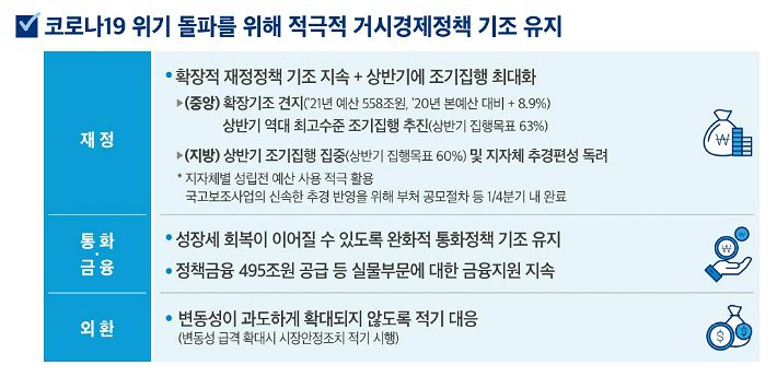 코로나19 불확실성 대응을 위해 정부가 내년에도 확장적인 거시정책 기조를 유지하기로 했다.