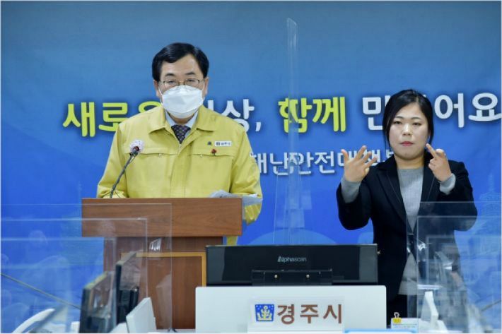 주낙영 경주시장이 코로나19와 관련한 브리핑을 갖고 있다(사진=경주시 제공)
