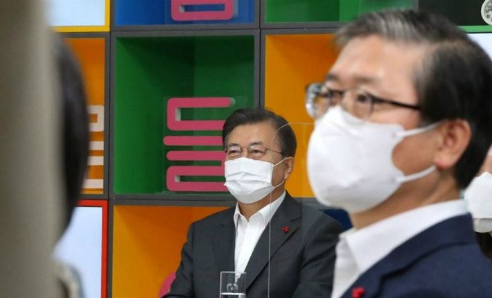 문재인 대통령과 변창흠 국토부장관 후보자(현 LH 사장)가 지난 11일 오전 경기 화성시 LH 임대주택 100만호 기념단지인 동탄 공공임대주택에서 열린 '살고 싶은 임대주택' 보고회에 참석해 있다.(사진=연합뉴스)