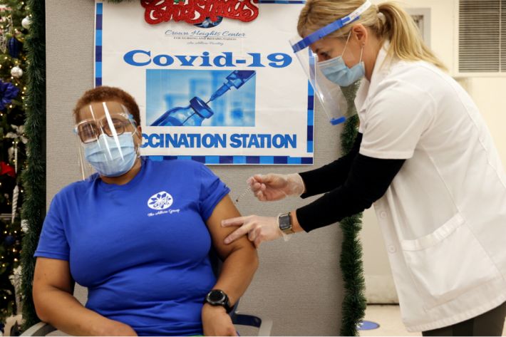 뉴욕 브루클린에 있는 요양원인 크라운 하이츠 센터 직원이 22일 화이자·바이오엔테크의 코로나19 백신을 맞는 모습. (사진=연합뉴스)