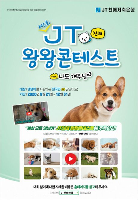 JT친애저축은행은 올해에는 코로나19 사태를 고려하여 지난 10월 초부터 약 두 달에 걸쳐 온라인으로 '제5회 JT친애 왕왕콘테스트'를 열었다. 행사 내용도 한층 다채롭게 준비해 반려동물을 통해 얻는 행복감을 함께 공유할 수 있도록 유도했다. 우선 메인 이벤트인 반려견 영상 콘테스트 '멍튜브스타'는 기존의 사진 첨부 방식에서 반려견의 생생한 모습을 담을 수 있는 동영상 첨부 방식으로 전환됐다. 더불어 반려묘 가족도 행사에 참여할 수 있도록 반려묘 사진 콘테스트인 '냥포토제닉'이 새롭게 선보여졌으며, 유기견에 대한 경각심을 제고하기 위한 공익 캠페인 '독투게더챌린지'도 처음 진행됐다.