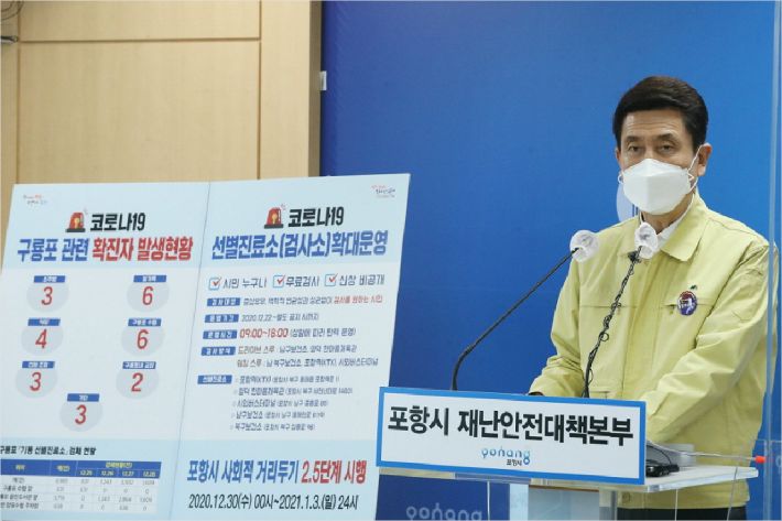 한편, 포항시는 '특별행정명령'을 통해 구룡포읍 전 읍민 대상 진단검사 실시, 구룡포읍 내 3인 이상 실내 소모임 금지, 구룡포읍 소재 다방(32곳)·노래연습장(6곳) 집합금지 등을 명령했다.
