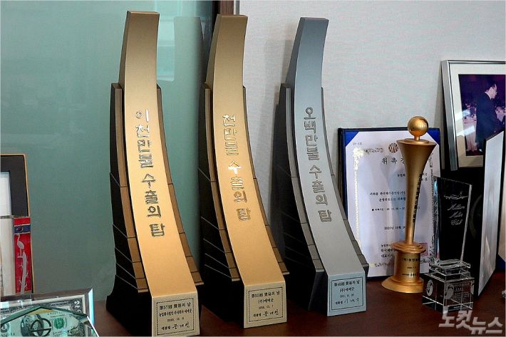신선농산물 수출전문 무역업체인 농업회사법인 (주)에버굿 상패 진열모습. 이정민 PD