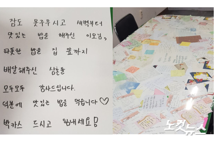 '엄마의밥상' 아침 도시락 배송을 받는 아이들이 도시락 제조업체에 보낸 감사 편지. (사진=전북외식산업 제공)