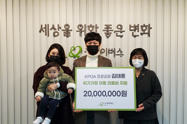 2020 한국프로골프(KPGA)투어에서 제네시스 대상과 상금왕을 차지한 김태훈은 굿네이버스 경기1본부에 위기 가정 아동 의료지 지원을 위한 후원금 2000만원을 전달했다. KPGA 제공