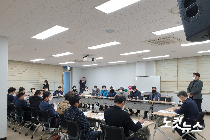 순천 신대지구 주민대표들이 서동용 의원과 간담회를 열고 초고층 오피스텔 추진에 따른 과밀화 우려를 제기하고 있다. 최창민 기자