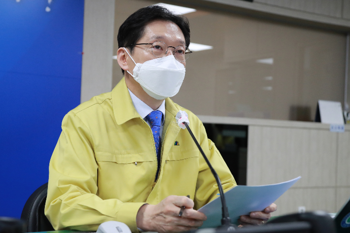 김 지사는 8일 도청 재난안전대책본부에서 열린 '1월 월간전략회의'에서 "정부가 역대 가장 높은 수준인 63%의 조기 집행률을 목표로 설정했는데, 신속 집행에 차질이 없도록 각 부서와 시군에서 점검하고 지원해 달라"고 당부했다.