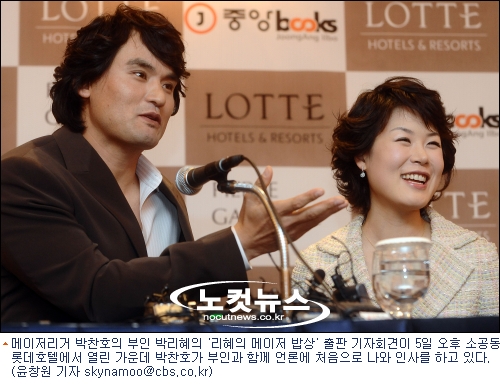 박찬호는 5일 롯데호텔에서 열린 아내 박리혜씨의 요리서적 ''리혜의 메이저밥상'' 출판기념회에 참석해 "결혼 전에는 점심 비슷한 아침을 먹었는데 결혼 뒤 아내가 일찍 차린 아침을 먹으면서 에너지면에서 더 좋아졌다"라고 말했다.