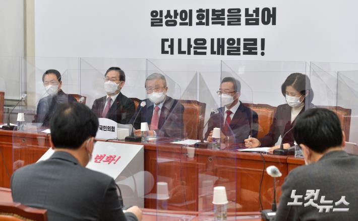 국민의힘 김종인 비대위원장이 18일 국회에서 열린 비상대책위원회의에서 모두발언을 하고 있다.