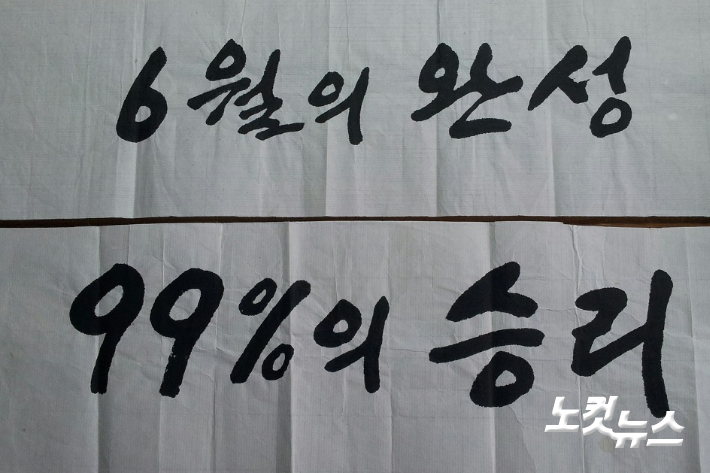 신영복 교수의 붓글제호 '유월의 완성 99프로의 승리'. 신영복 아카이브 제공