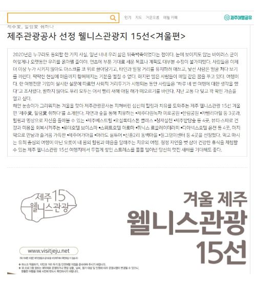 제주관광공사 선정 겨울 제주 웰니스관광 15선. 제주관광공사 홈페이지 캡처