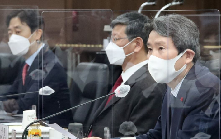 이인영 통일부 장관이 지난 14일 정부서울청사 통일부 대회의실에서 열린 제318차 남북교류협력추진협의회를 주재하며 발언하고 있다. 연합뉴스