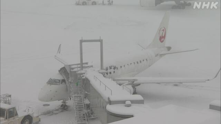 눈보라속에 불시착한 일본항공 여객기. NHK 캡처