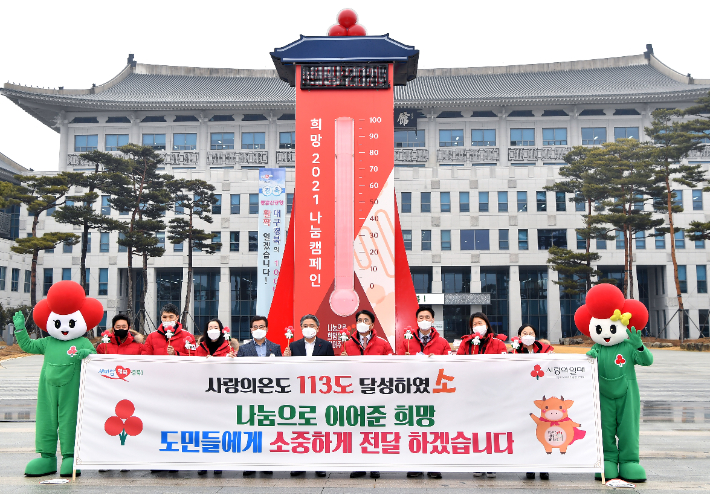 경북 도민들의 이웃사랑 지수를 나타내는 '희망 2021 나눔캠페인' 사랑의 온도가 100도를 가볍게 돌파했다.