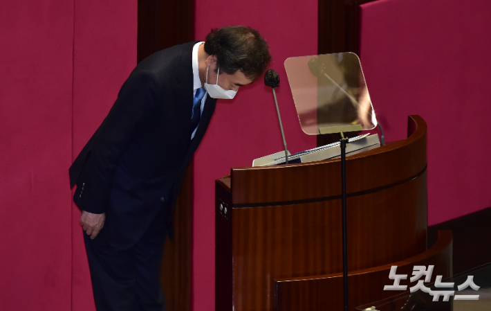 더불어민주당 이낙연 대표가 지난 1일 국회에서 열린 제384회국회(임시회) 제1차 본회의에서 생각에 잠겨 있다. 윤창원 기자