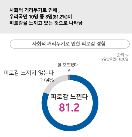 또 거리두기가 길어짐에 따라 국민 81.2%는 피로감을 경험한 것으로 나타났다.