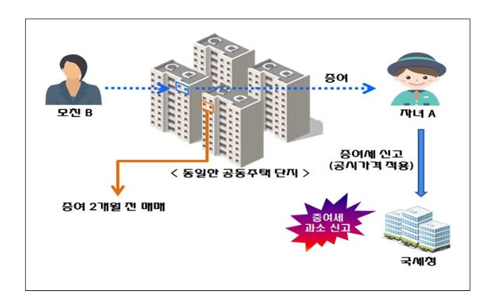 유사매매가액이 아닌 공시가격으로 아파트 증여 과소신고 선정사례. 국세청 제공
