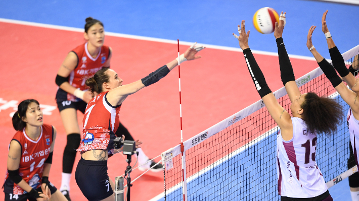 IBK기업은행(코트 왼쪽)과 KGC인삼공사의 경기 모습. 한국배구연맹 제공