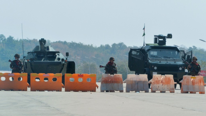 군부 쿠데타 선언 속 의사당 봉쇄한 미얀마군. 연합뉴스