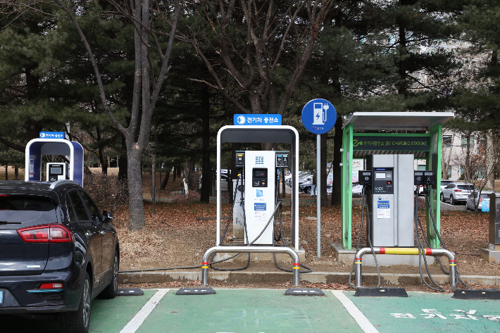 안양시청사에 설치돼 있는 전기차충전소 모습이다. 안양시청 제공