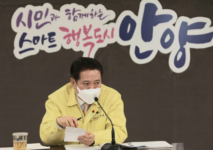 지난달 최대호 안양시장이 업무보고회를 진행하고 있는 모습이다. 안양시청 제공