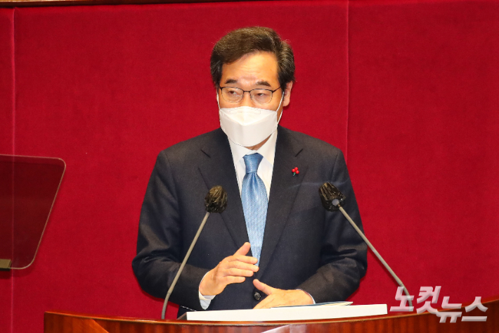 이낙연 더불어민주당 대표가 2일 오전 국회 본회의장에서 열린 제384회 국회(임시회) 제2차 본회의에서 교섭단체 대표연설을 하고 있다. 윤창원 기자