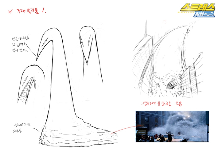 "개인적으로 '파닥파닥'이 흥행에 실패하고 우울한 시기가 있었어요. 막 부수고 싶을 정도로 스트레스를 받았어요. 그런 스트레스를 속으로만 갖고 있을 게 아니라 영화화할 수 없을까 하는 생각을 하고 있었죠. 제가 아이가 셋인데, 어느 날 아이가 놀다가 '아아아앙' 하면서 자지러지는 모습을 보니 불이 타오르는 것 같더라고요. 평상시 갖고 있던 스트레스에 대한 발상과 맞아떨어지면서 이걸 영화화하면 재밌겠다는 생각이 들었죠."스트레스가 외부로 표출되는 모습이 불길이 이는 모습과 닮았다고 봤다. 어린 딸이 이 감독에게 준 영감이 스트레스 괴물에 대한 아이디어로 본격화됐고, 여기에 에너지 음료가 인기를 얻던 당시 상황이 겹쳐지며 스토리를 구체화해 나갔다.