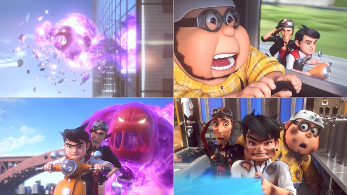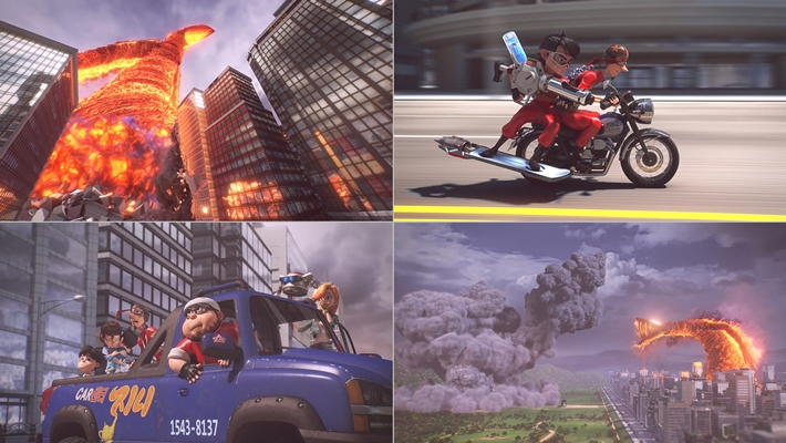 ◇ 카체이싱 등 다양한 액션 시퀀스 넘치는 불괴물 퇴치 작전이번 작품 연출에 있어서 가장 중점을 둔 부분은 무엇보다 '재미'다. 이 감독은 "'파닥파닥'은 사실 누가 볼지, 아이들이 울지 생각 안 하고 표현할 수 있는 건 다 한 작품"이라며 "이번에도 아이들이 보기에 힘든 장면이 아예 없지는 않지만, 밝은 주제곡을 통해 밸런스를 맞춰가며 너무 어두워질 것 같으면 다시 환기하는 식으로 연출에 신경을 많이 썼다"고 이야기했다.