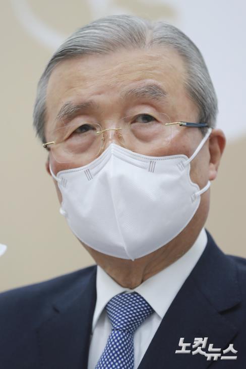 김종인 국민의힘 비대위원장이 5일 오전 서울 여의도 국회에서 현안 관련 긴급기자회견을 열고 있다.