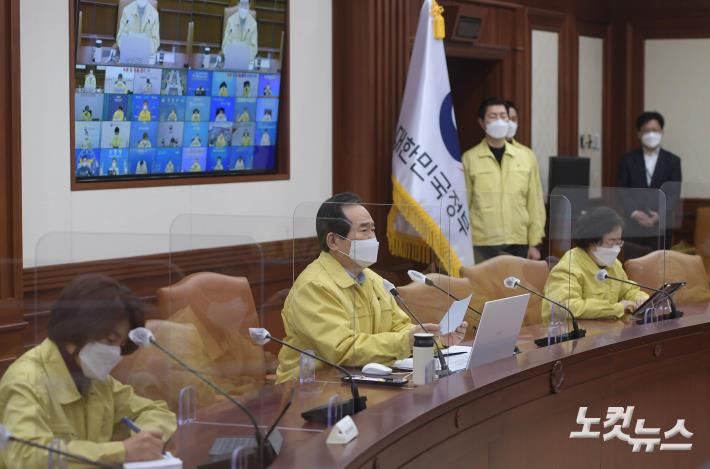 정세균 국무총리가 6일 오전 서울 종로구 정부서울청사에서 열린 신종 코로나바이러스 감염증(코로나19) 대응 중앙재난안전대책본부(중대본) 회의에서 모두발언을 하고 있다. 정부는 이날 오전 중대본 회의 직후 사회적 거리두기 단계, 방역수칙 완화 여부를 발표한다.