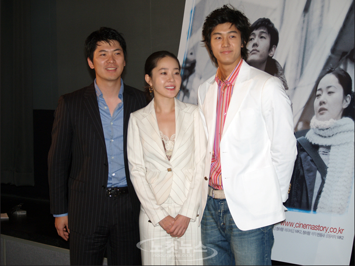 11일 서울 시네코아 극장에서 영화 ''극장전''의 주연 배우 김상경과 엄지원, 이기우(왼쪽부터)가 시사회를 마치고 기자들을 향해 포즈를 취하고 있다. (이찬호 기자/노컷뉴스)