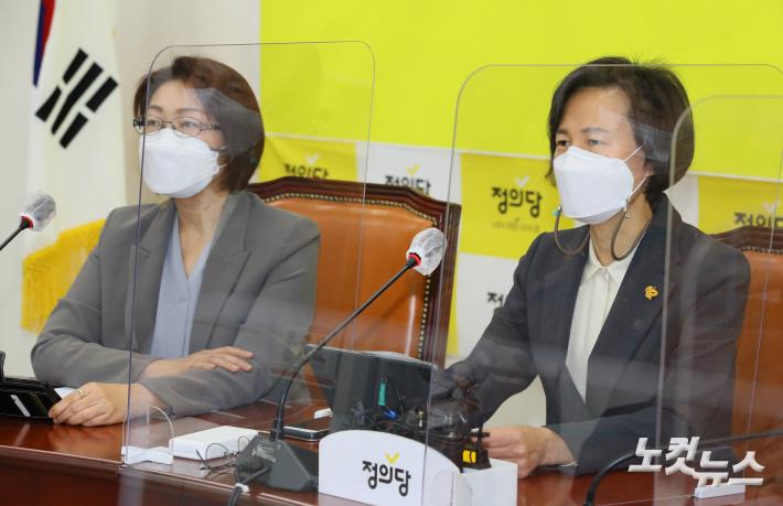 정의당 강은미 비상대책위원장이 10일 국회에서 열린 비상대책위원회의에서 발언하고 있다.