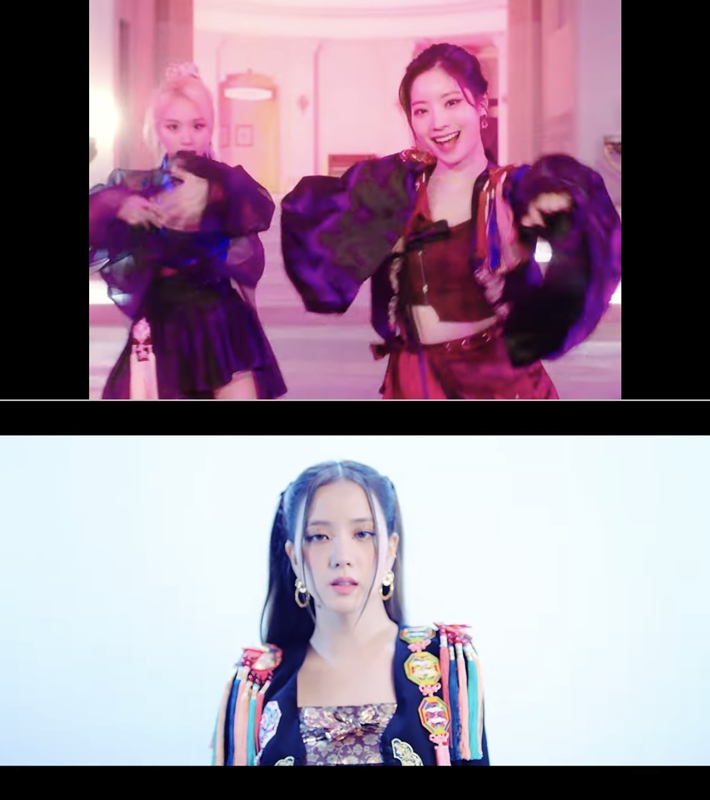 사진 위는 트와이스 다현, 사진 아래는 블랙핑크 지수. 유튜브 화면 캡처